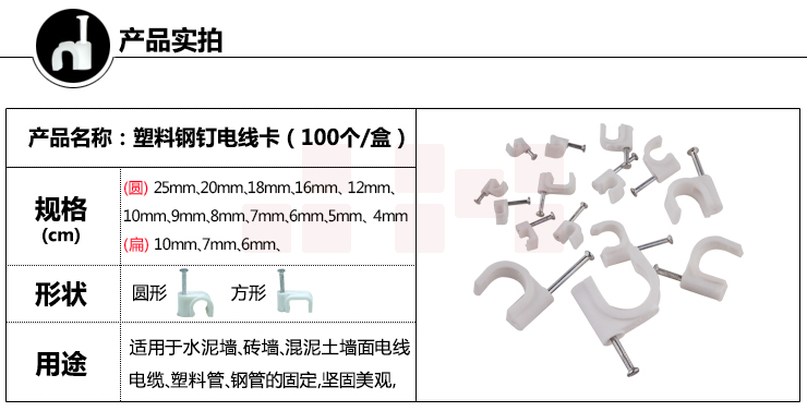 天坛 钢钉线卡 9mm圆(9#) 塑料线卡100个/盒