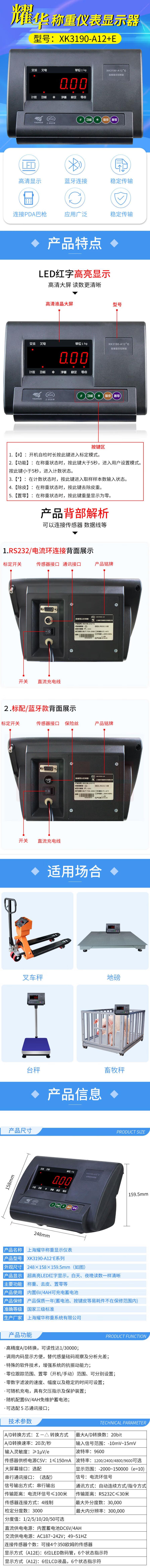 上海耀华XK3190-A12+E称重仪表显示器电子地磅仪表叉车秤台秤表头 标配