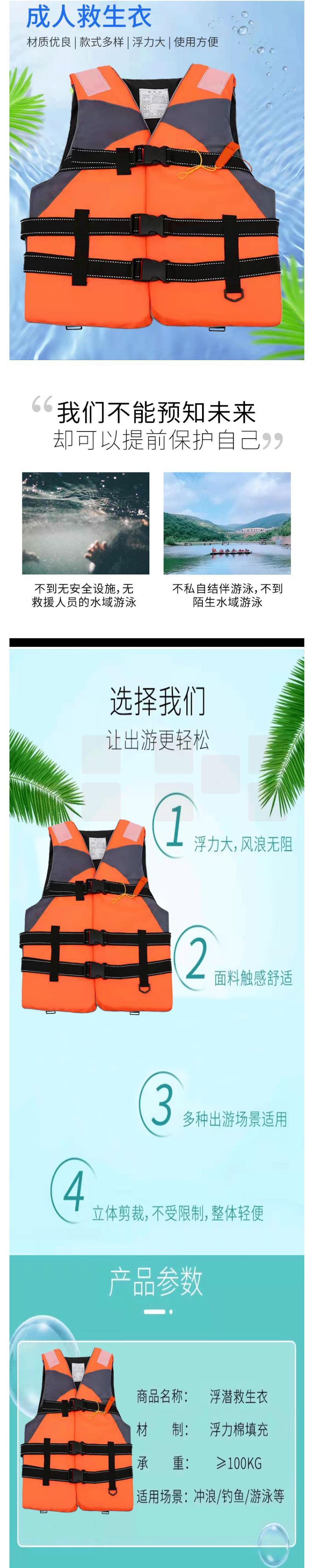 成人救生衣 浮力游泳衣 带反光条 均码 货号:LJ