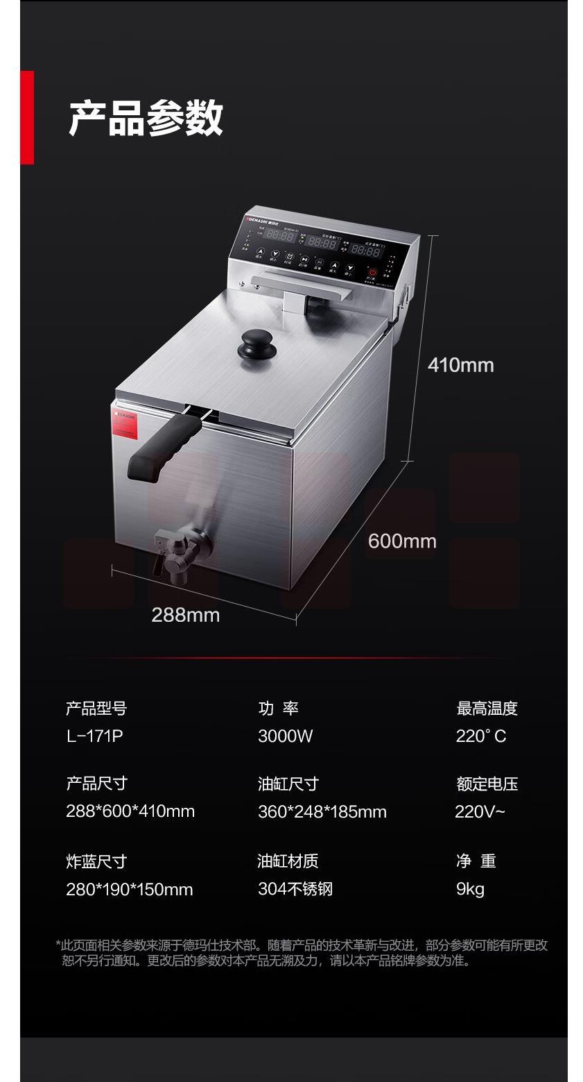 德玛仕 电炸炉电炸锅 油炸锅家用炸鸡薯条油条炸串 L-171P 货号:LJ