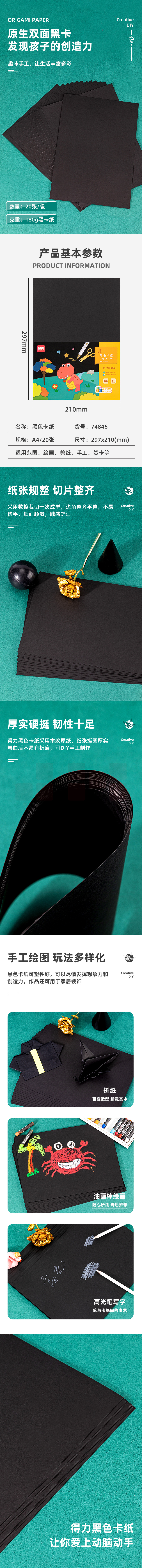 A4黑色卡纸 硬卡纸手工折纸课堂DIY手工纸 20张/包 74846