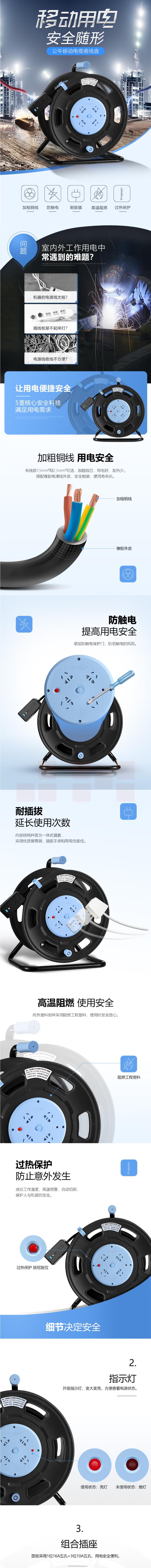 公牛 绕线器GN-806DN 30米线 2.5MM² 线轴 过热保护漏电保护16A大功率电缆卷盘插座/插排