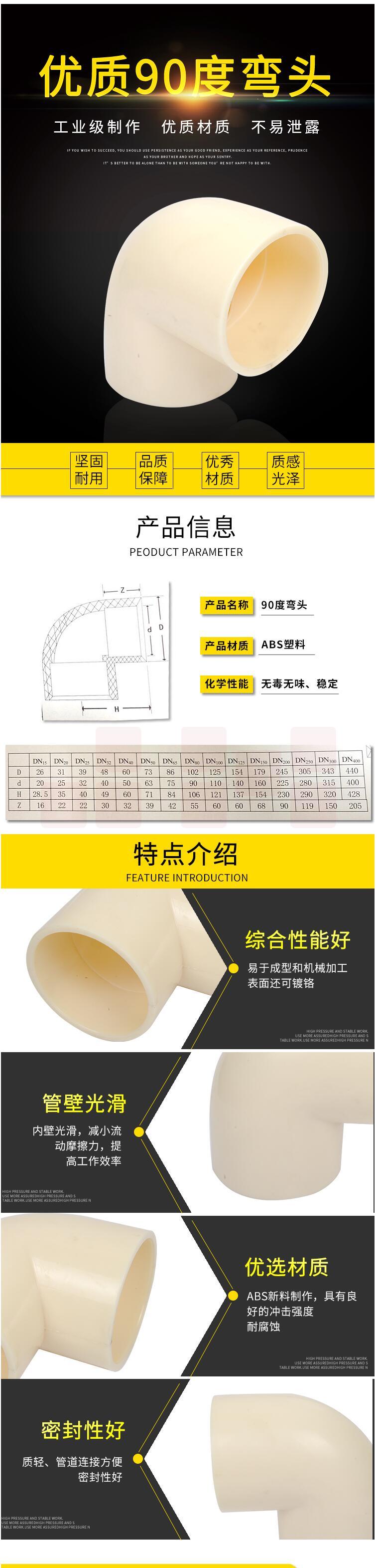 水管接头 90度弯头 ABS弯头 50mm 货号:JC