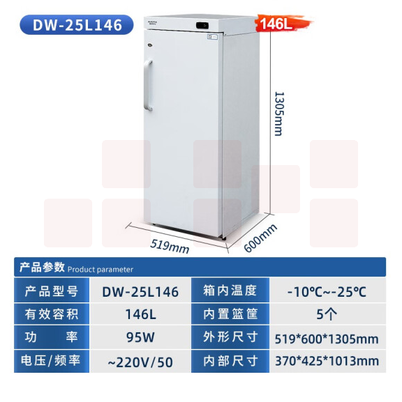 澳柯玛(AUCMA) -10度/-25度 立式带锁冷冻柜 低温保存箱 146升 DW-25L146 货号:TXH