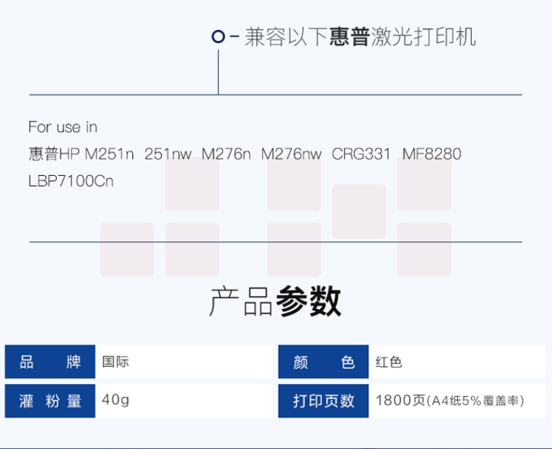 国际 CF213A红色硒鼓 适用惠普 HP M251n 251nw/M276n/M276nw/CRG331 MF8280/LBP7100Cn