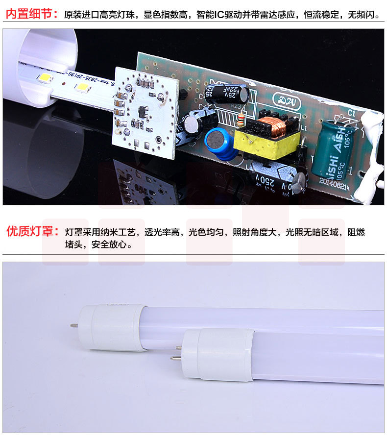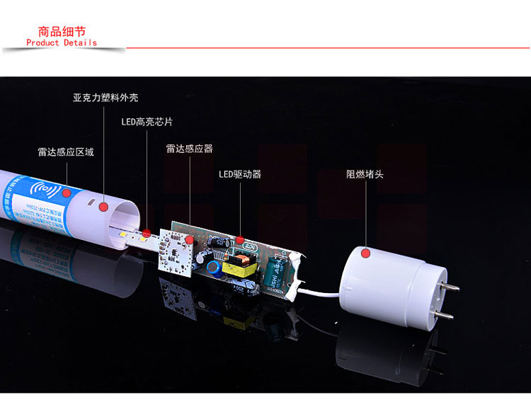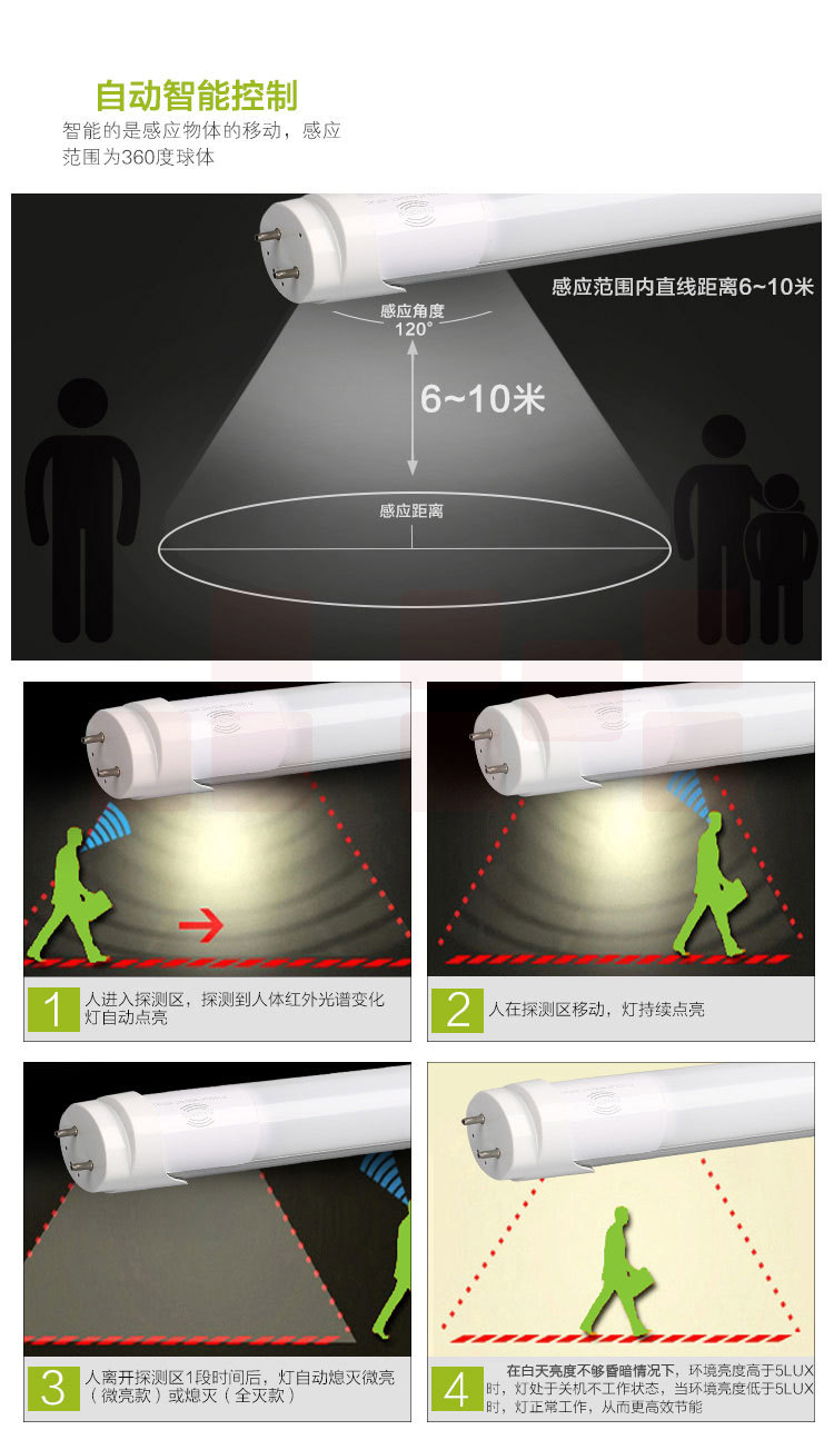 光迪 LED雷达感应人体感应灯管地库节能感应灯管T8/18W1200MM三兄腾辉