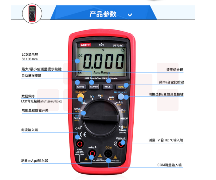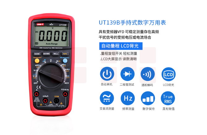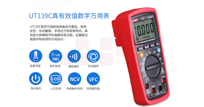 优利德 (UNI-T)有效值数字万用表 防烧自动量程 UT139C
