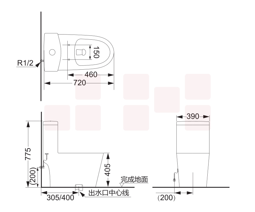 HDC6215B 喷射虹吸式连体坐便器 720×390×775mm 3/4.5 升双档节水型 UF 静音缓降盖板 坑距 400mm