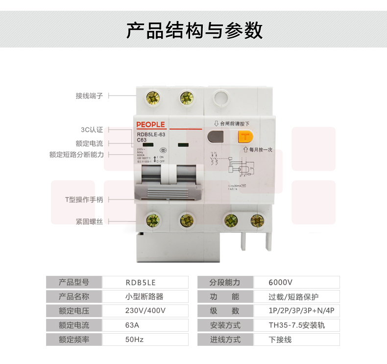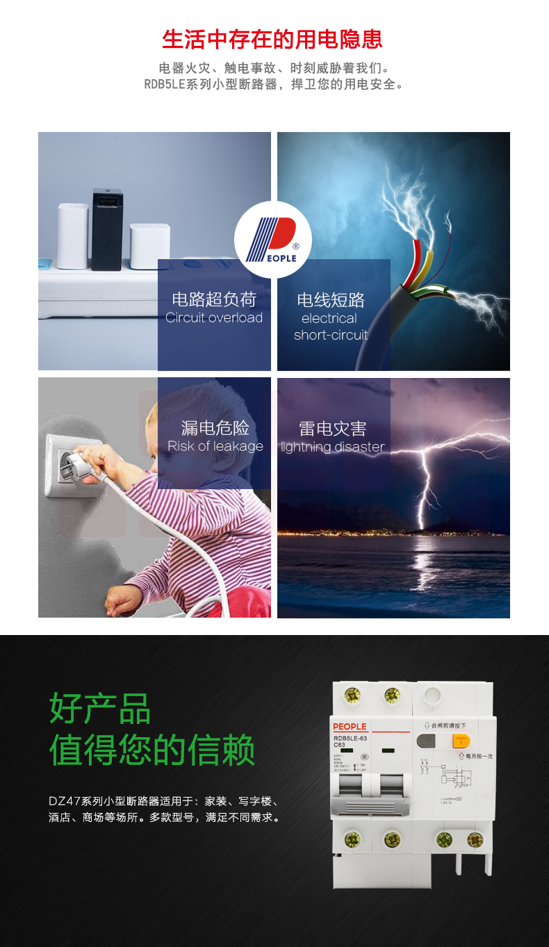 人民电器(PEOPLE) RDB5LE-63漏电保护器 DZ47升级款1P