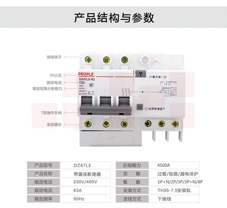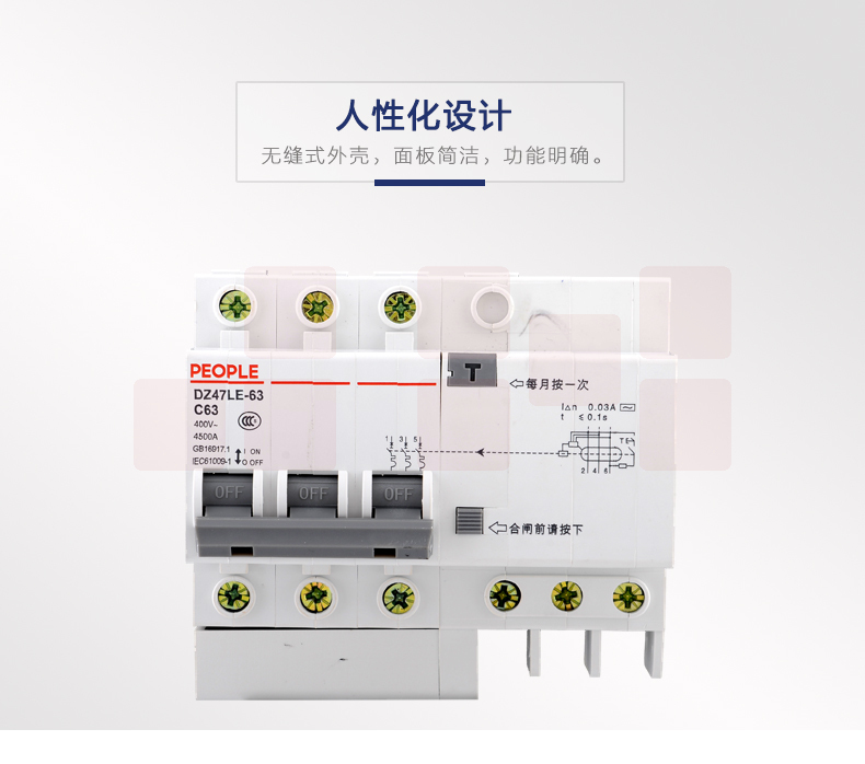 人民电器 DZ47LE 3P-63A小型漏电断路器