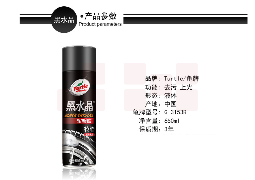 龟牌 上光保护剂 黑水晶轮胎釉650ml G-3153 货号:JC