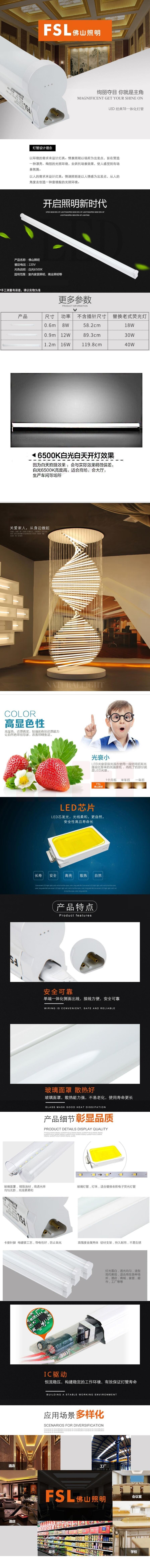 佛山照明 经典T8外置一体化支架0.9米-12W-6500K(白光)T8灯管支架一体化套装