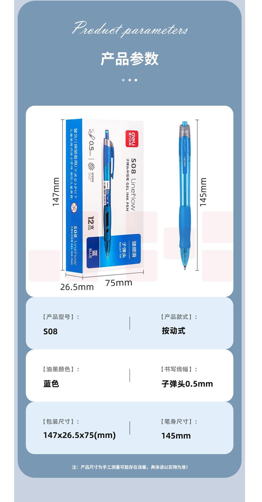 得力 S08臻顺滑中性笔0.5mm弹簧头签字笔(红色)单位;支