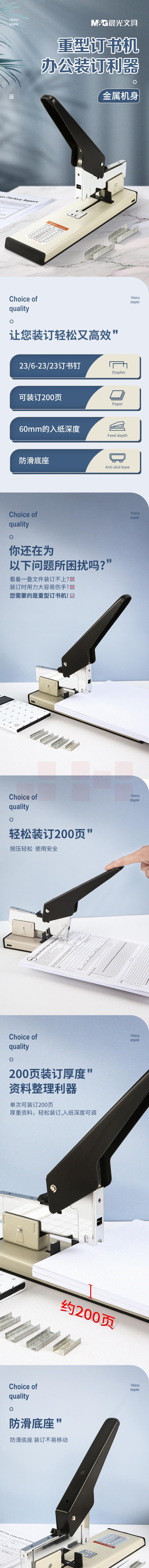 晨光 200页重型订书机/订书器 适配23/6~23/23订书钉 ABSN2654