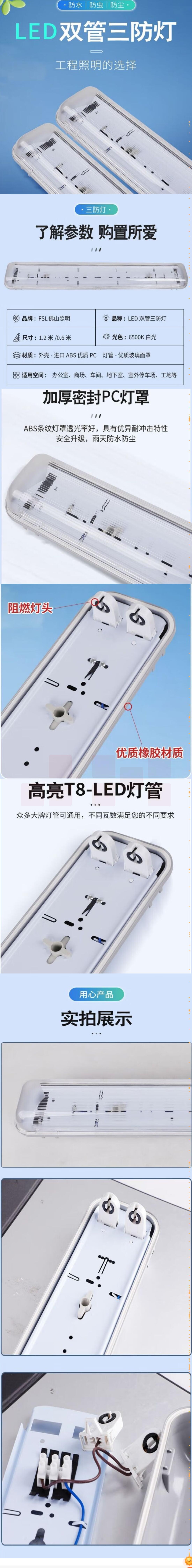 佛山照明LED三防灯支架T8双管带罩防水防蚊虫防尘 不含灯管 1.2米