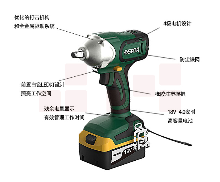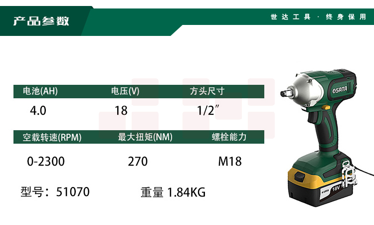 世达(SATA)1/2"系列18V锂电冲击扳手51070