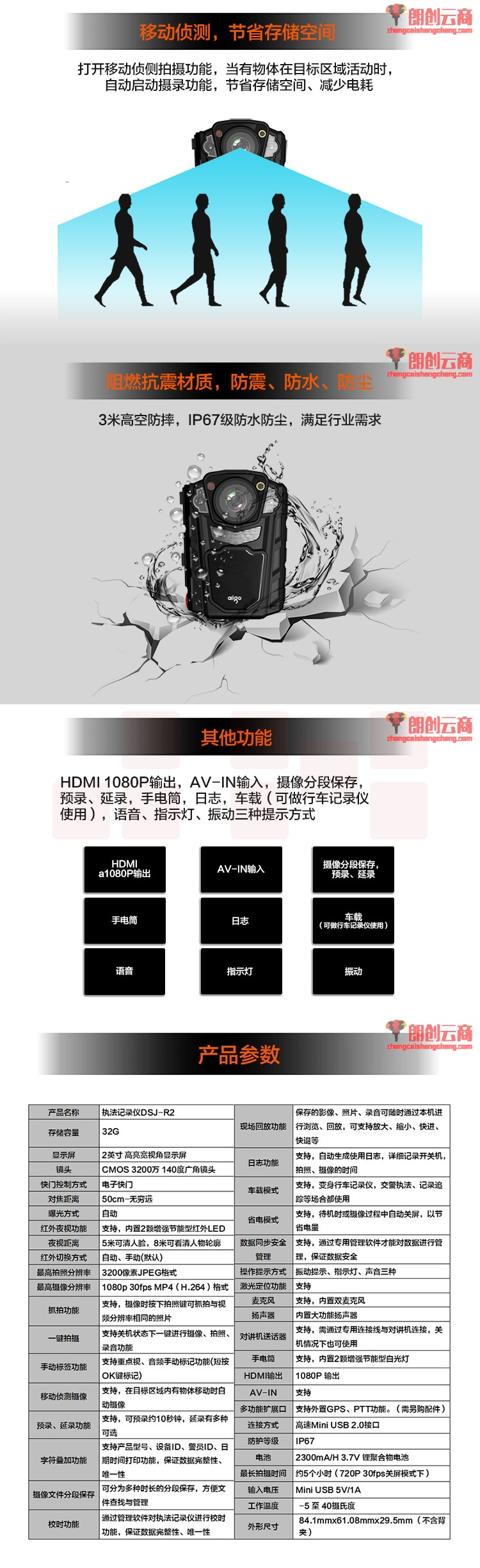 爱国者(aigo) DSJ-R2 执法记录仪 警用版 红外夜视1080P便携加密激光定位录音录像拍照对讲 32G