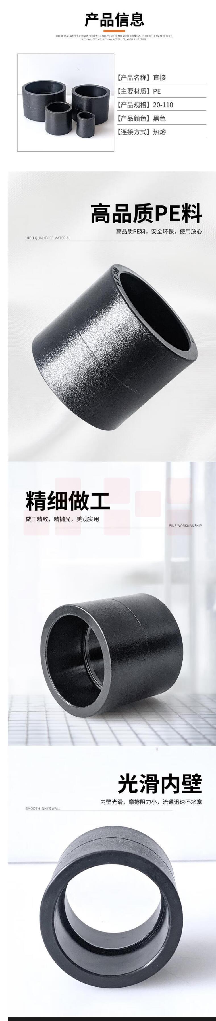 PE直通 PE管件 热熔接头 PE管箍 63mm 货号:JC