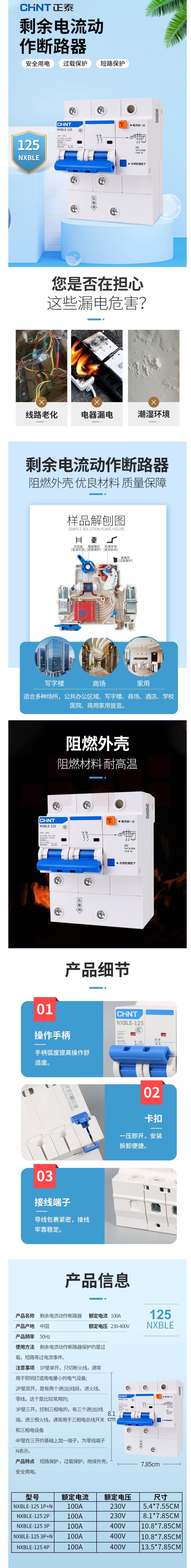 正泰(CHNT) 漏电保护器 剩余电流动作断路器NXBLE-125 3P 100A