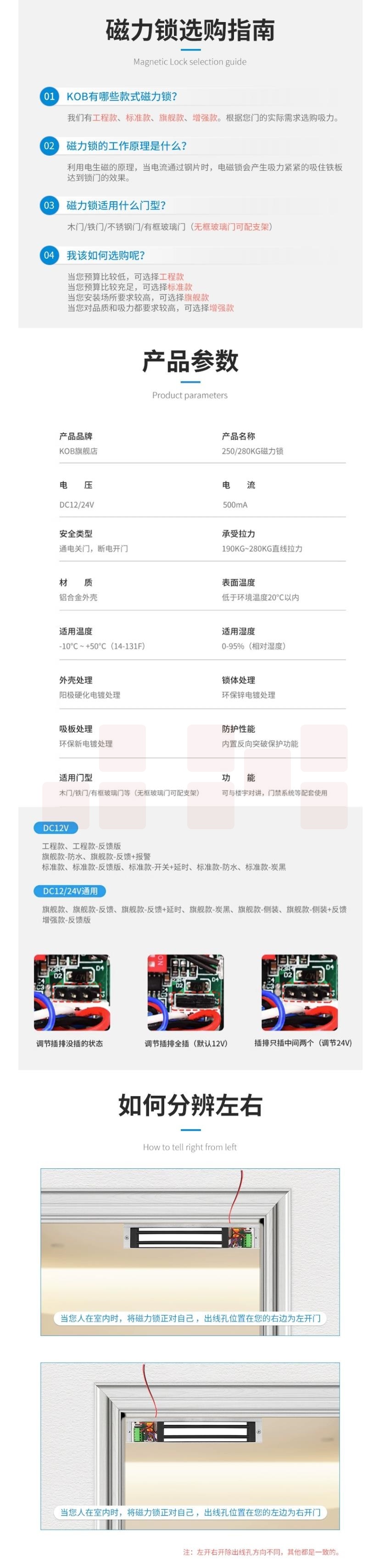 KOB 电子单门磁力锁 电磁锁 KT-L280-QMY-02 右开 货号:JC