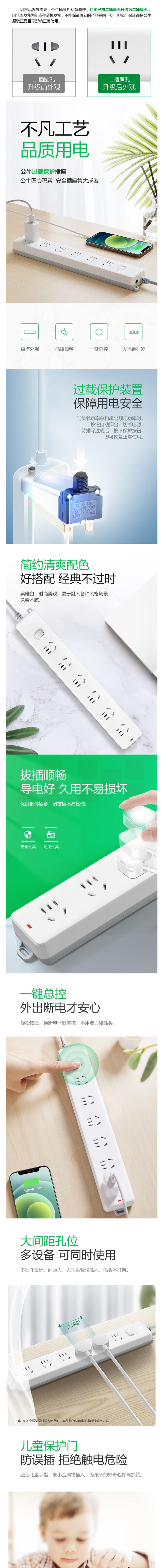 公牛 GN-107 6位总控 3米多位插座 超功率保护 插座接线板/拖线板