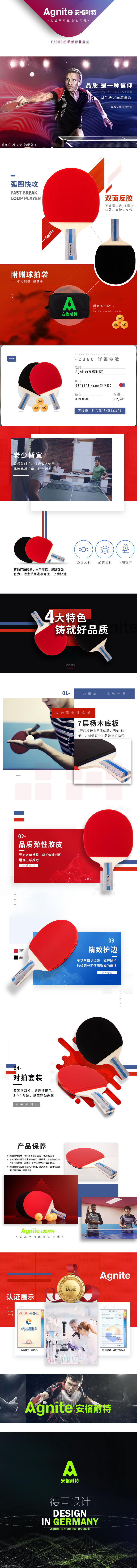 安格耐特F2360乒乓球拍(正红反黑)(2个/副)