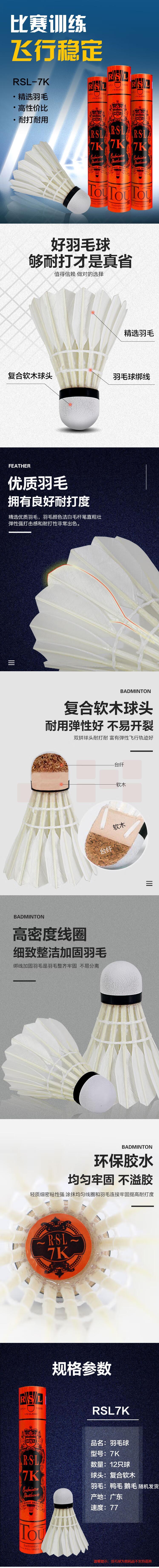 亚狮龙(RSL)RSL7号 训练比赛用球 稳定耐打 77速羽毛球