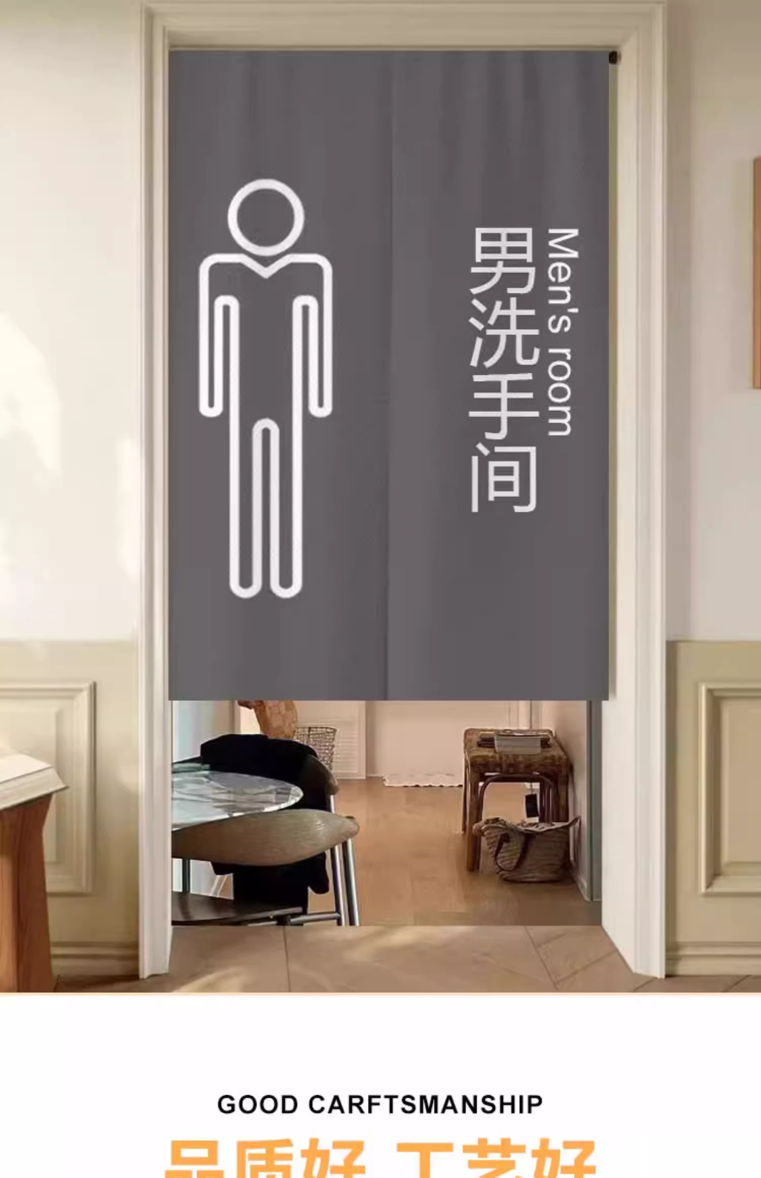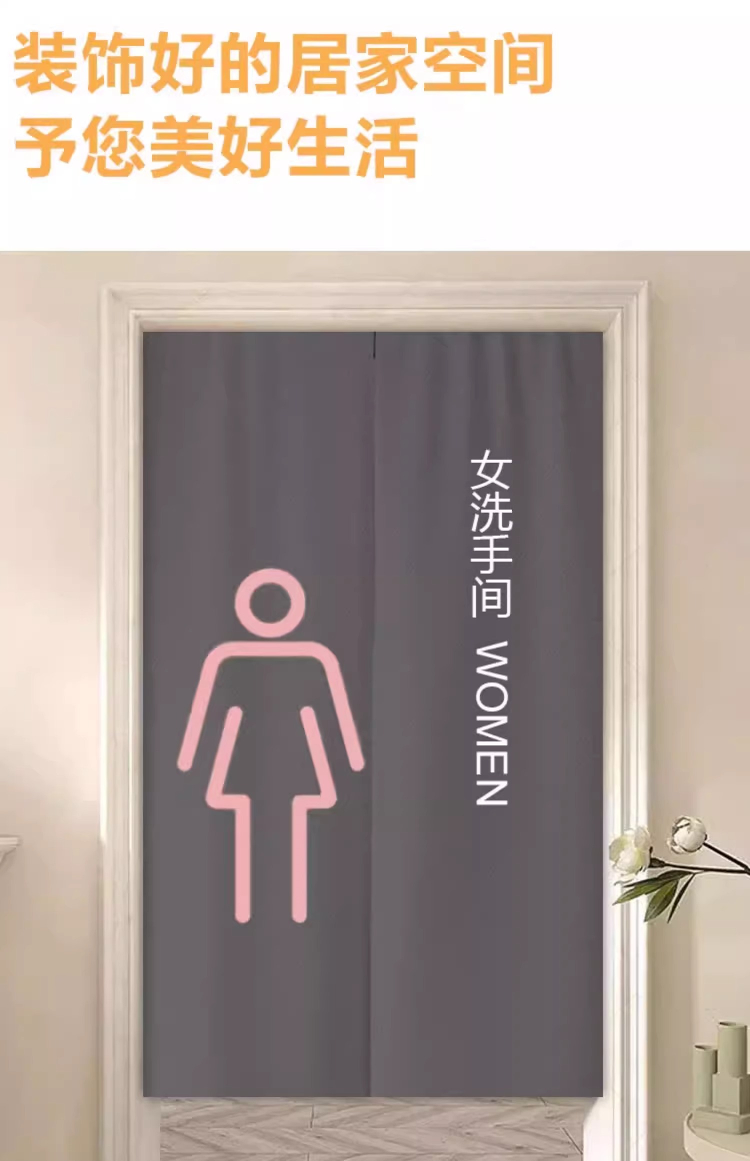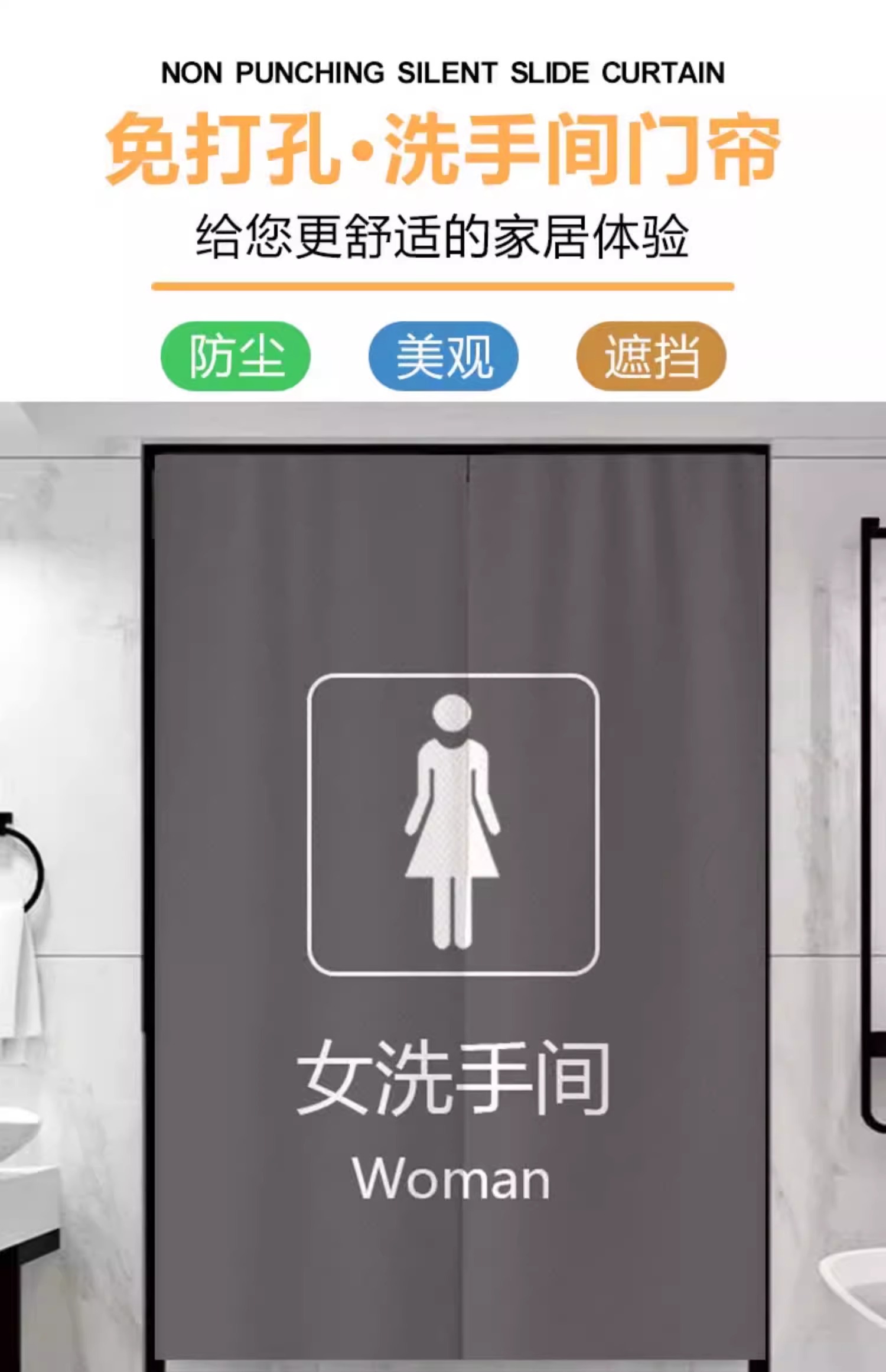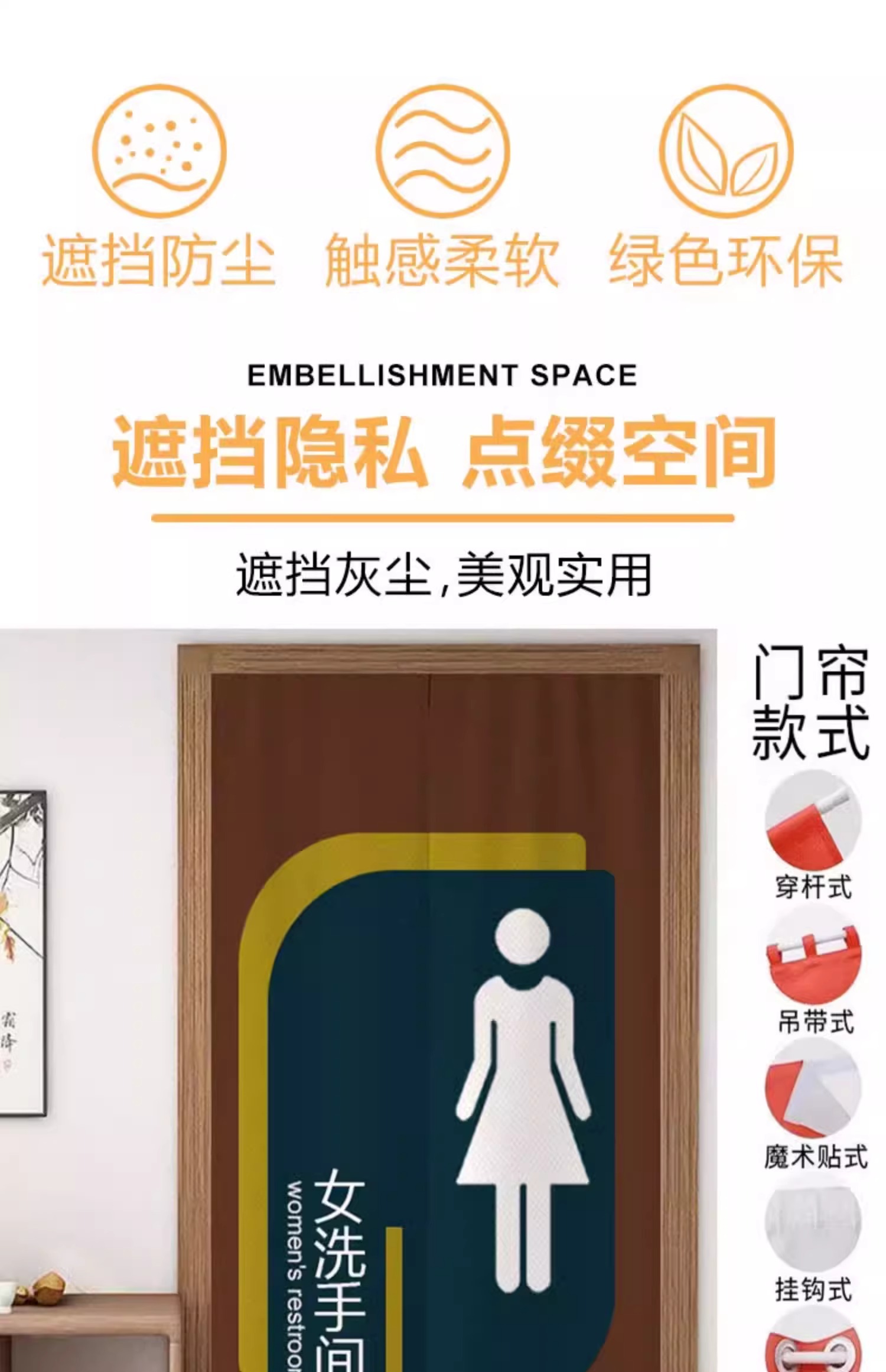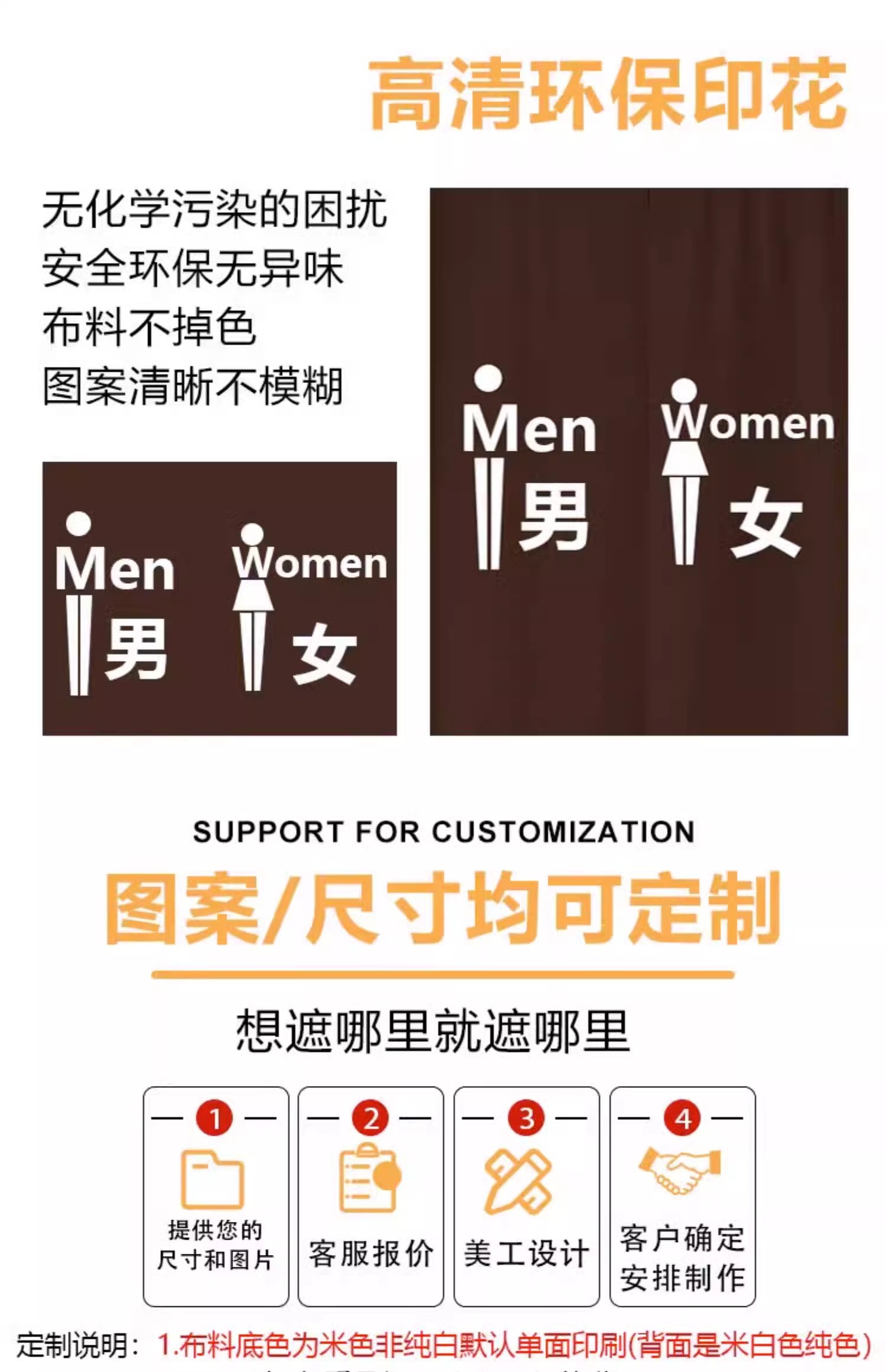 卫生间门帘定制logo厕所半帘洗手间商用遮挡布帘免打孔厨房隔断帘