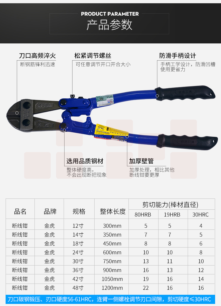 金虎(G0LDENTIGTR)18"(450mm)断线钳断线剪钢丝剪