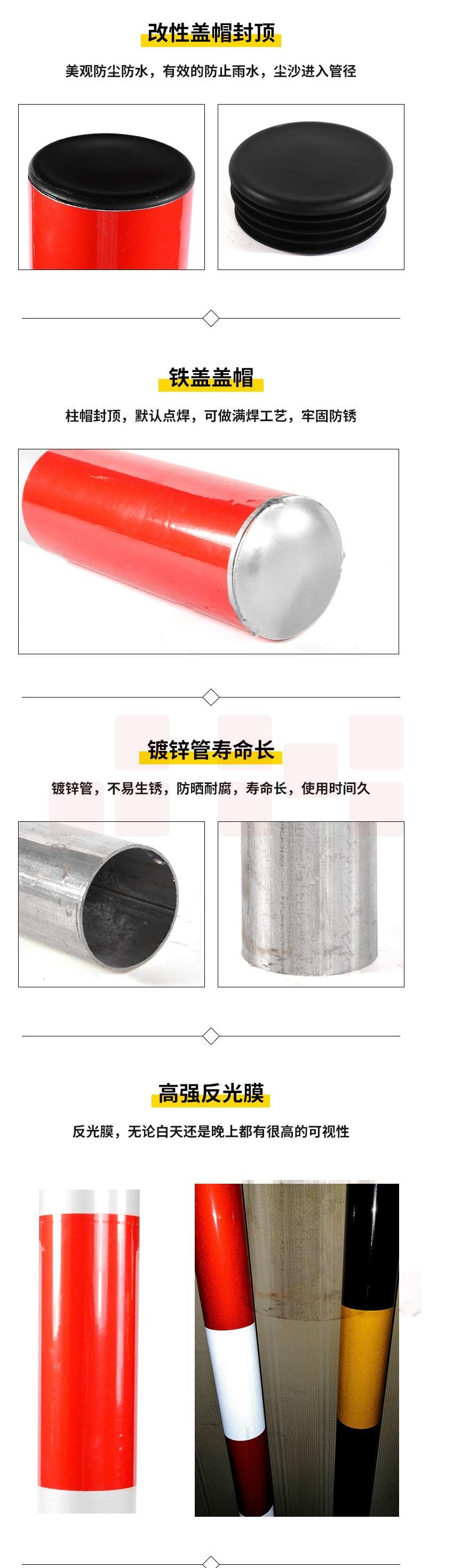警示柱 道路路桩 防撞柱 停车桩隔离立柱 76*750*1.2mm 红白贴膜 货号:TXH