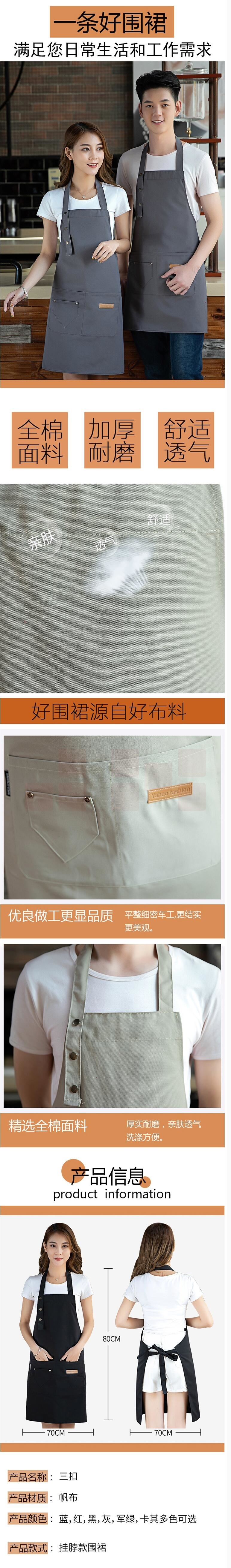 时尚围裙工作服 韩版家用厨房咖啡厅工作服 182三扣围裙 蓝色