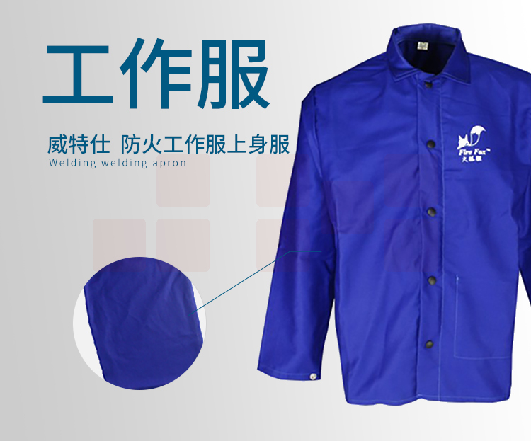 威特仕/WELDAS 33-6830 火狐狸电焊服 阻燃隔热防烫工作服上衣 蓝色 S 1件 企业专享