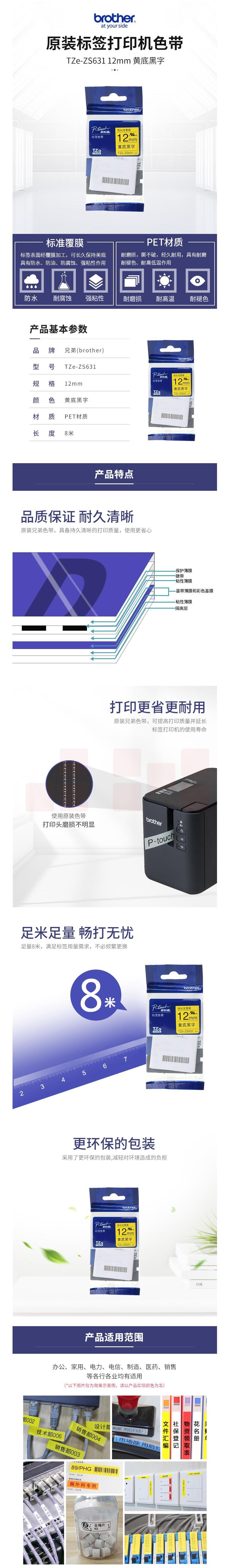 兄弟 TZe-ZS631标签机色带 12mm黄底黑字