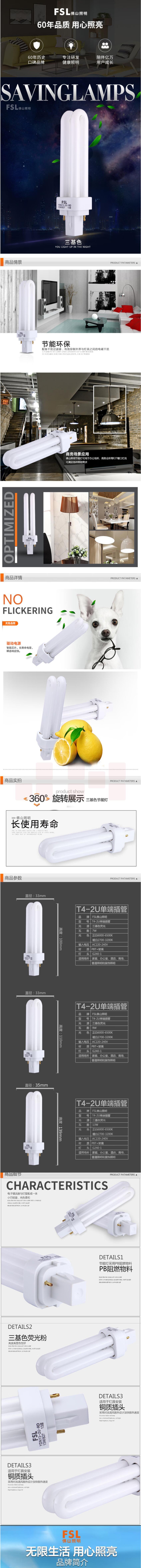 佛山照明 9W插拔节能灯 U型插拔灯管T4-2U节能灯泡2针黄光