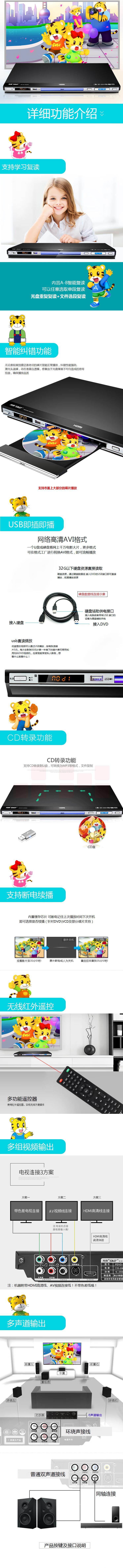 先科PDVD-959A DVD播放机 HDMI巧虎播放机CD机VCD DVD光盘光驱播放器 影碟机 USB音乐播放机 黑色