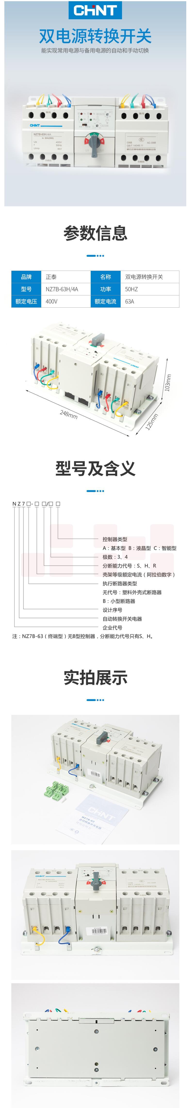 正泰(CHNT)自动转换开关 双电源切换开关 NZ7B-63H/4A C型20A