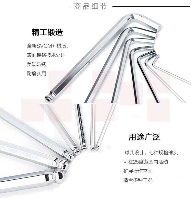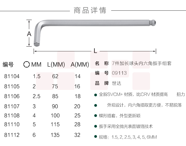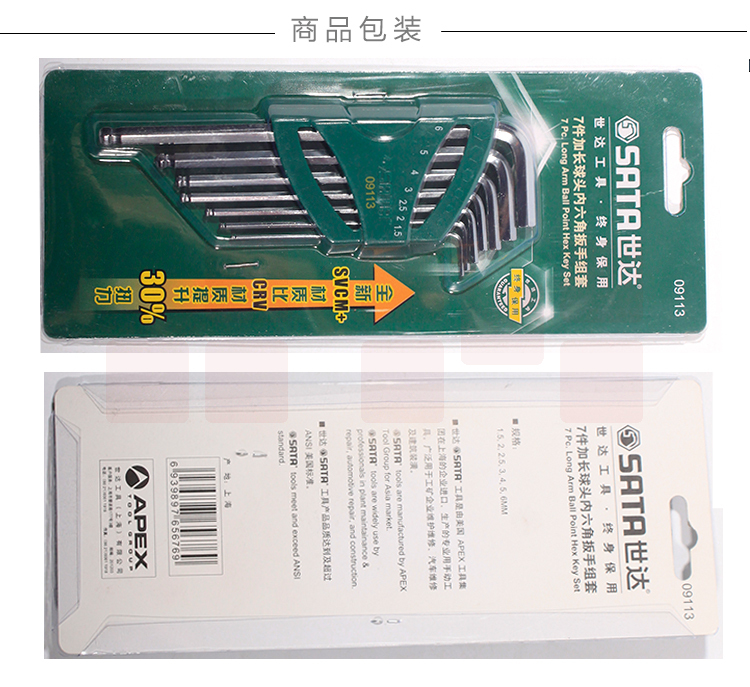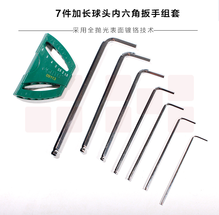 世达(SATA)7件加长球头内六角扳手组套货号09113