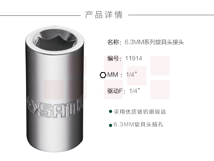 世达(SATA)6.3MM系列旋具头接头(6.3MM旋具头插孔)货号11914