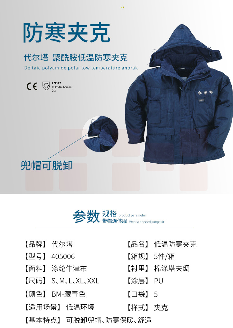 代尔塔 405006 低温冷库防寒服 户外运动 零下30度 藏青色