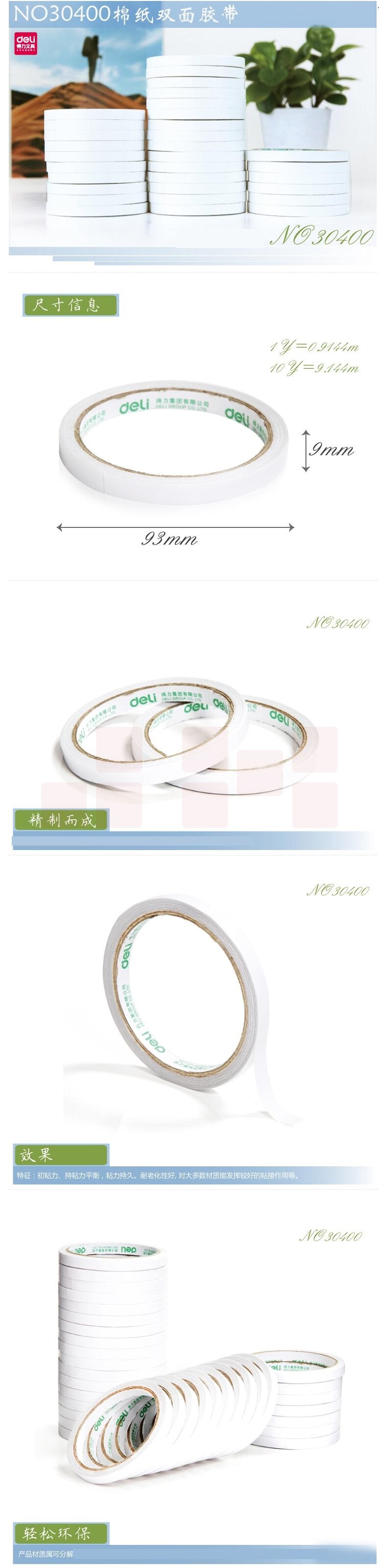 得力(deli) 30400高粘性棉纸双面胶带 9mm*10y(9.1m/卷) 32卷袋装