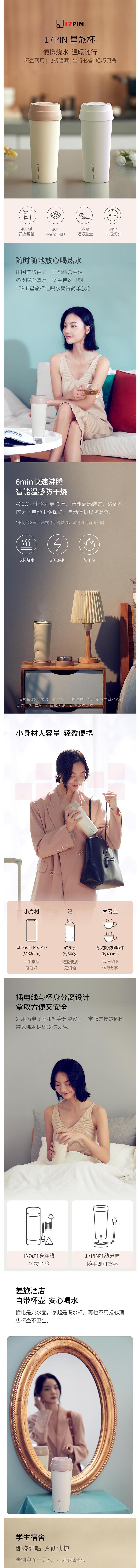 小米家17pin电热杯 保温杯400ml 304不锈钢旅行电热水杯 17PIN星旅杯 莫兰迪米