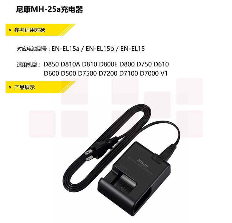 尼康(Nikon) 电池适配充电器原装充电器 MH-25a 货号:ZF