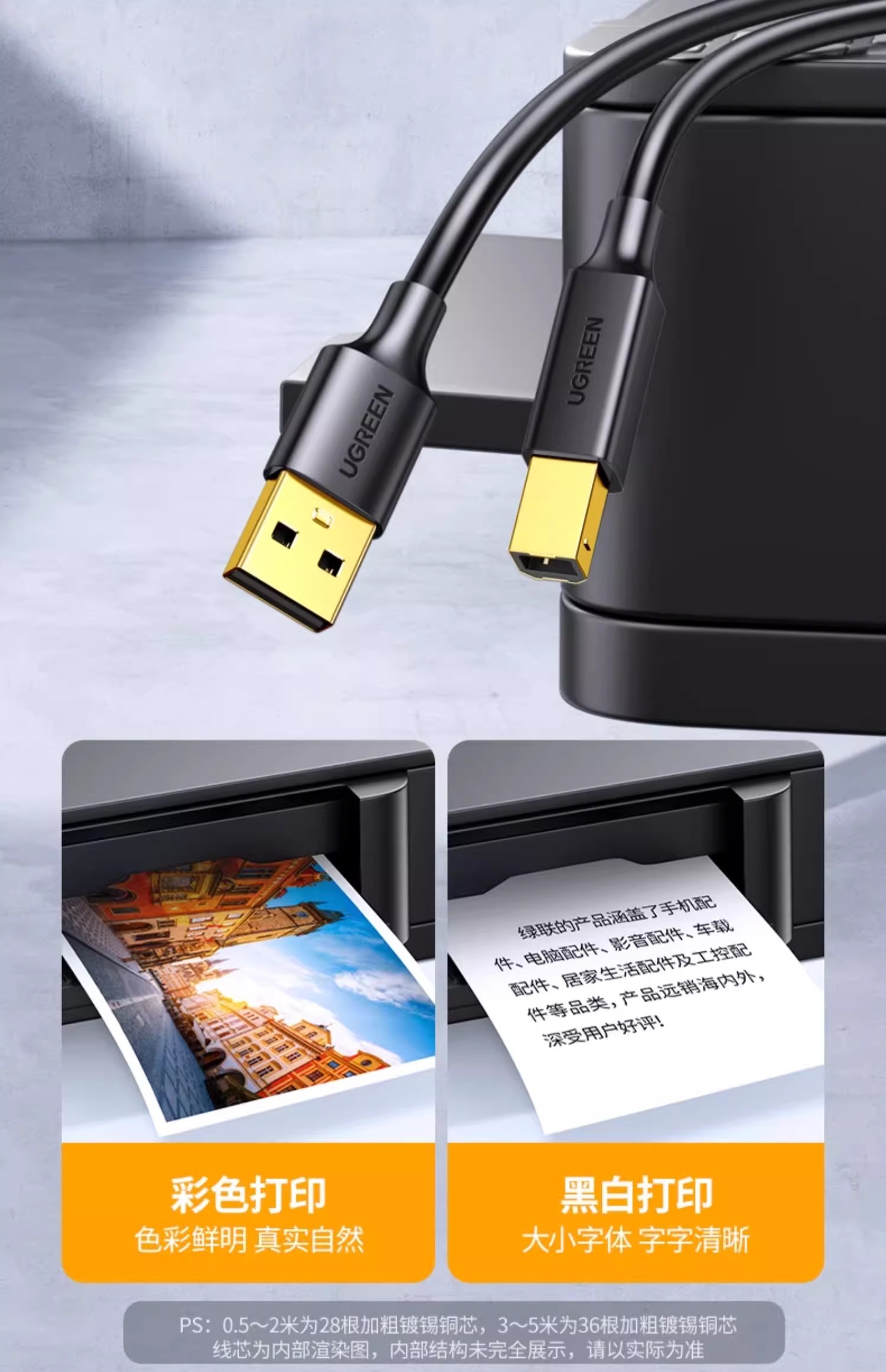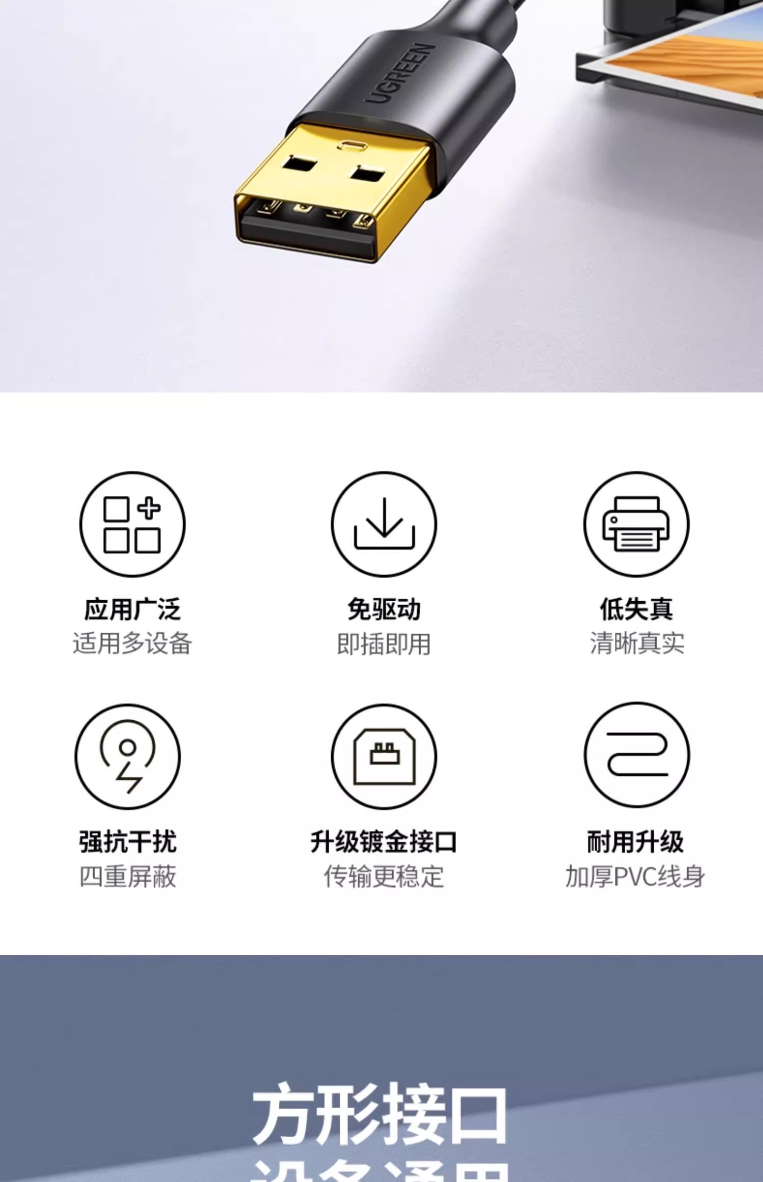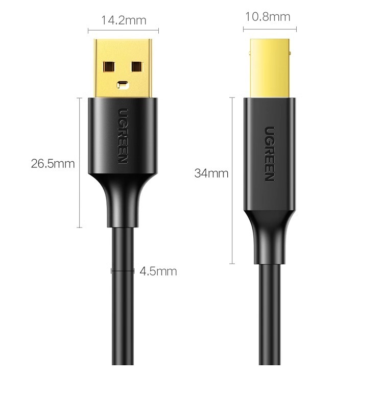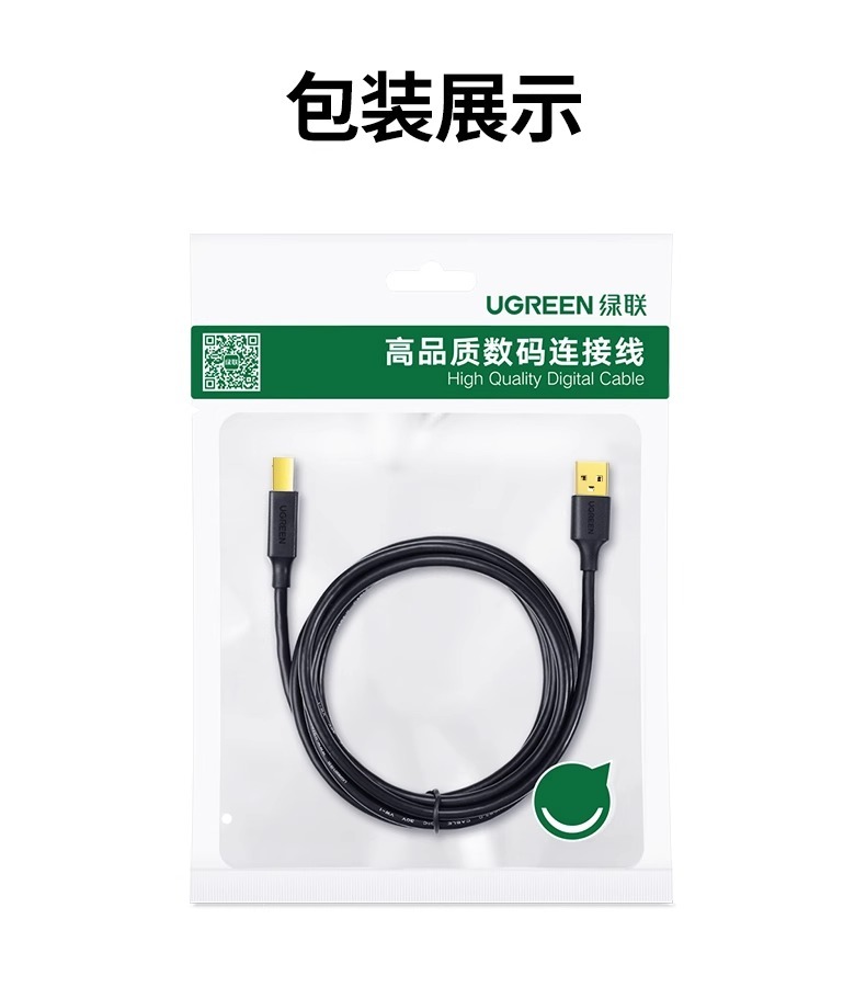 绿联打印机数据线电脑加长连接延长USB转方口适用佳能惠普爱普生10米
