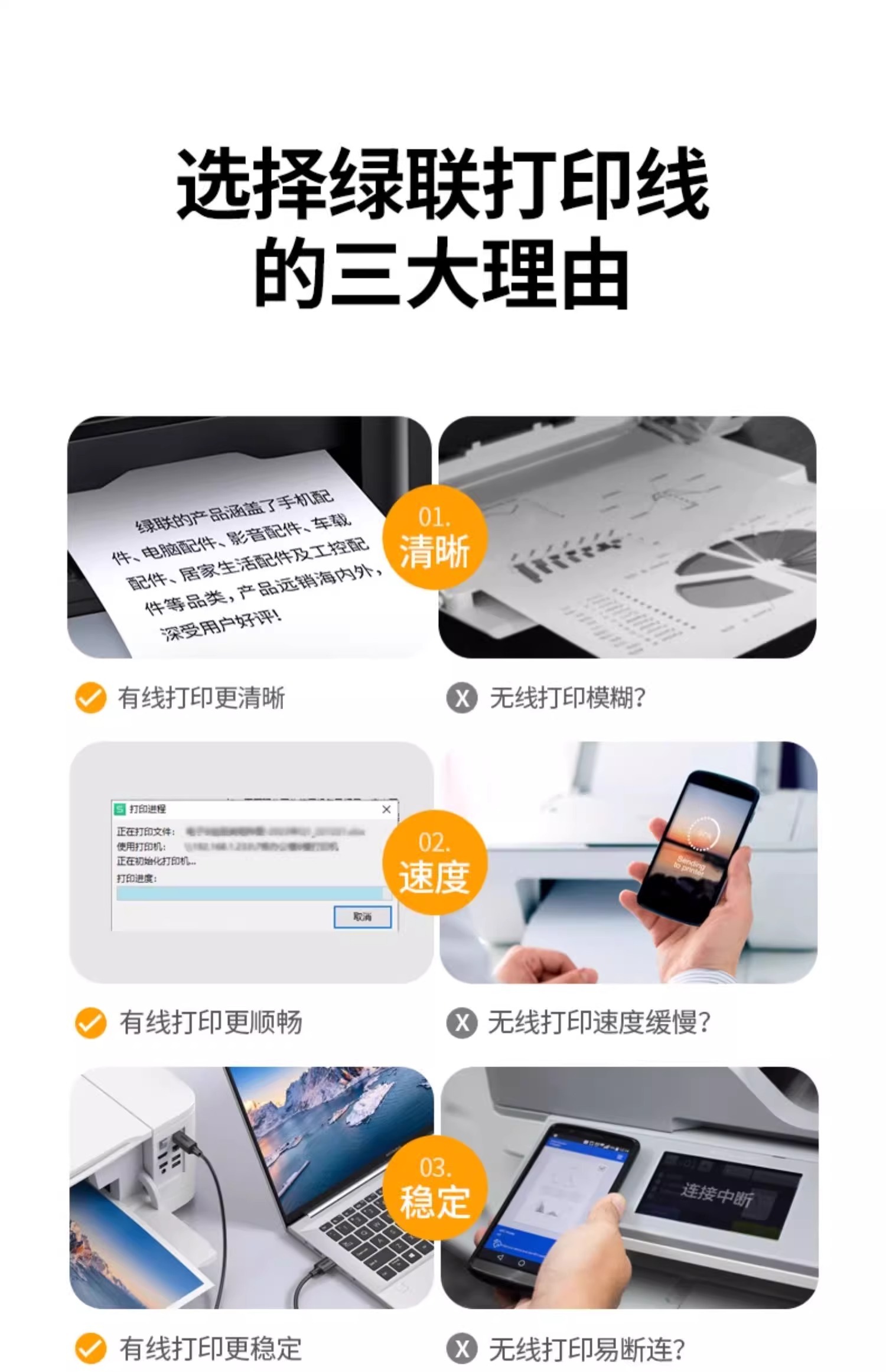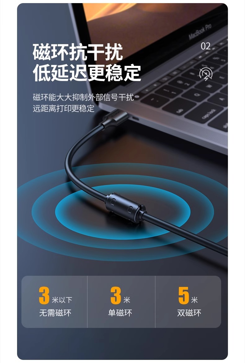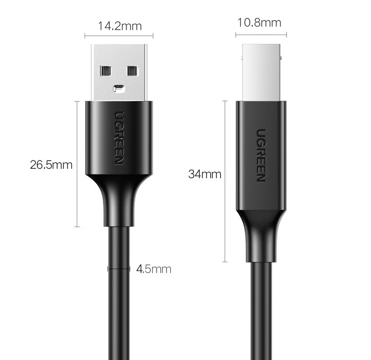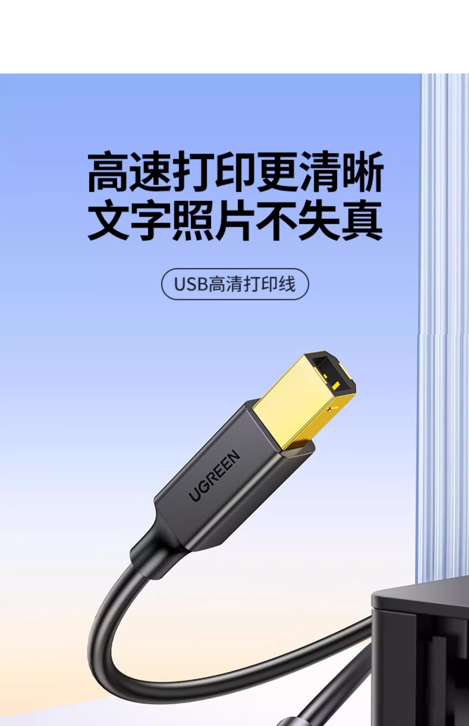 绿联打印机数据线电脑加长连接延长USB转方口适用佳能惠普爱普生10米