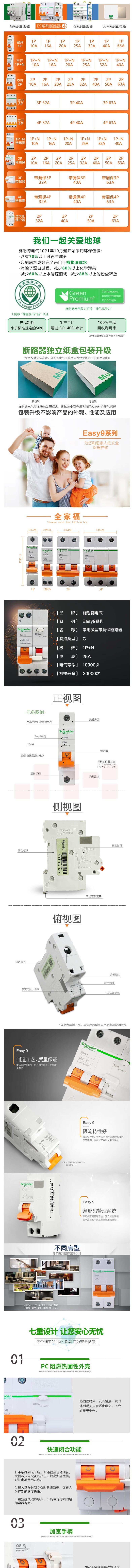 施耐德 1P+N C25A 带漏电保护断路器A型空气开关带漏保