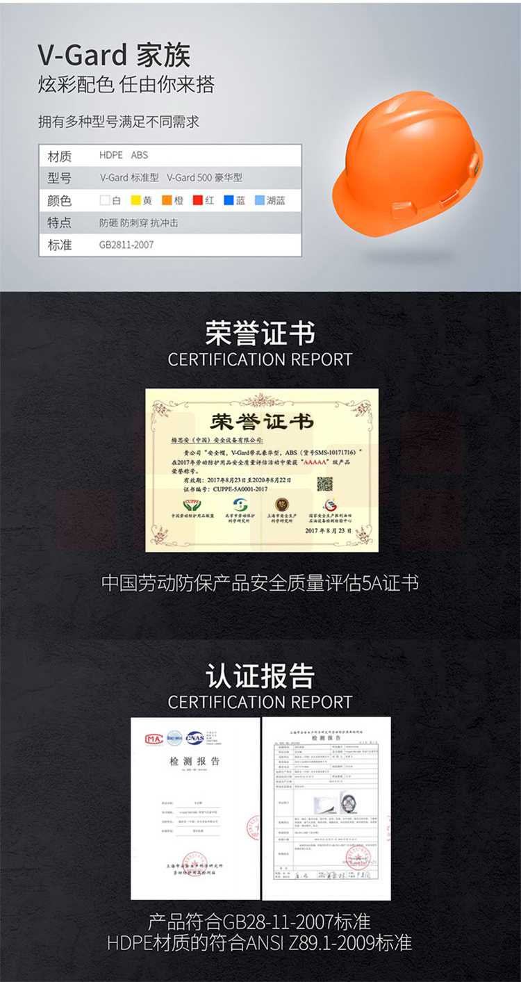 梅思安 V-Gard PE 标准型 安全帽10146462