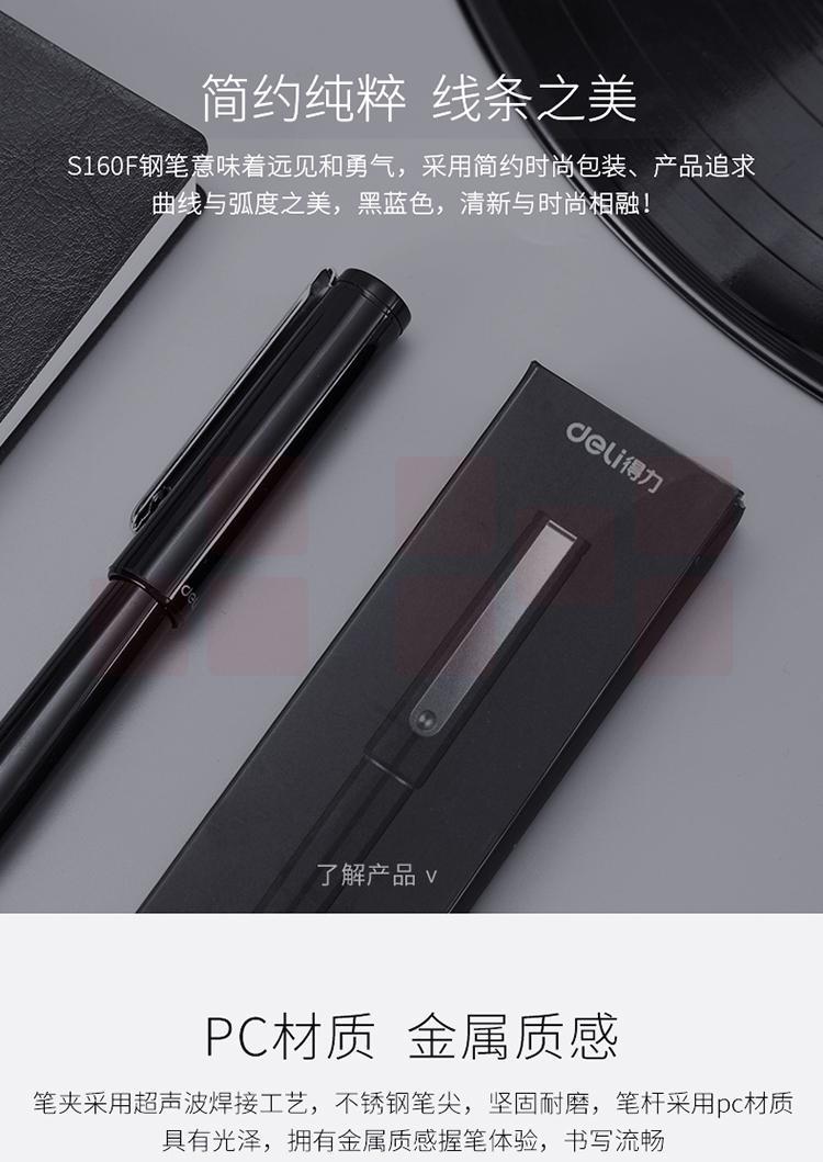 得力 DL-S160F 沉稳办公系列F尖/明尖钢笔墨水笔 黑色 按支销售