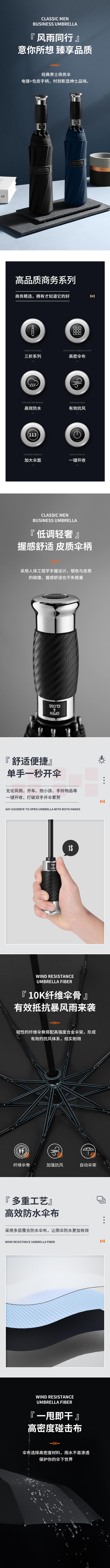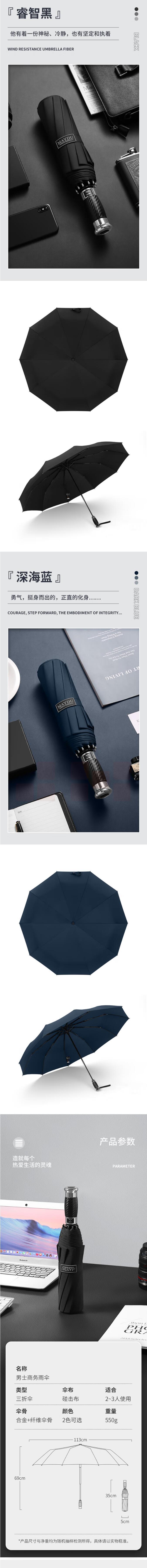美度 M3385 全自动折叠晴雨伞10骨加大加固三折伞男士商务雨伞两用63.5cm*10骨 藏青
