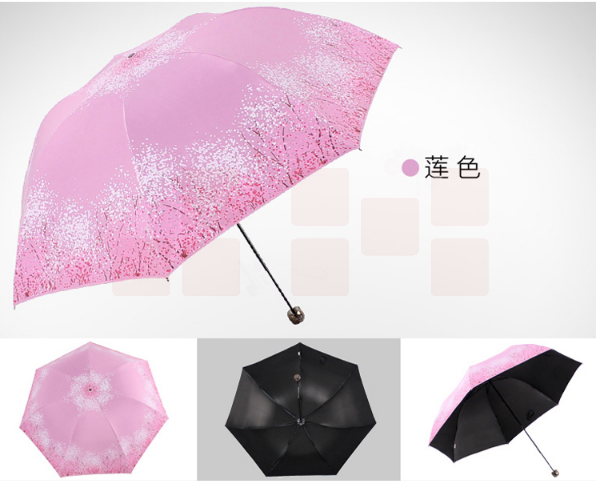 天堂伞 森系女孩黑胶丝印三折超轻蘑菇公主晴雨伞太阳伞 粉红 30134E
