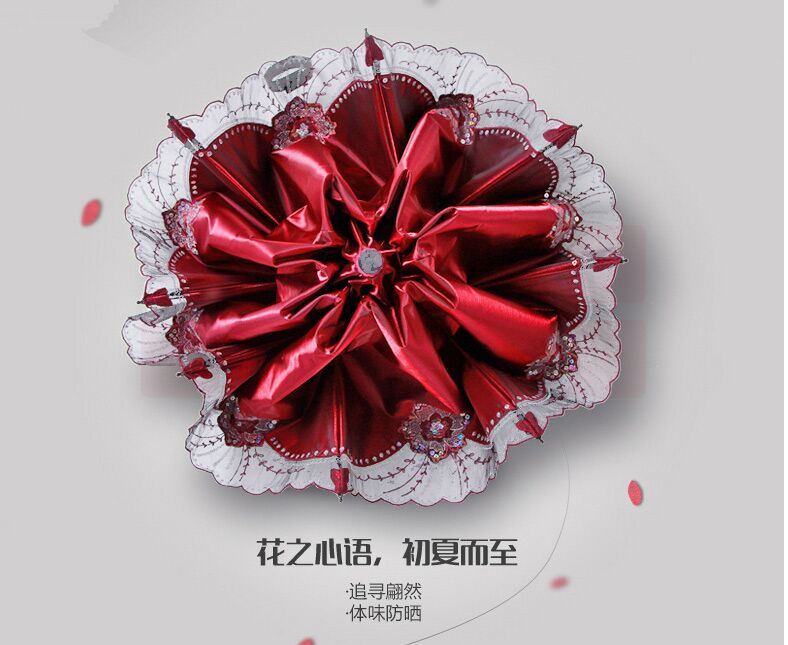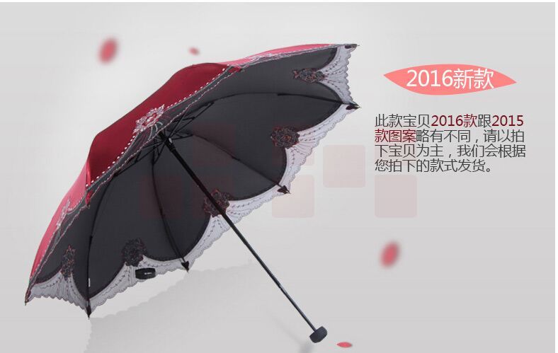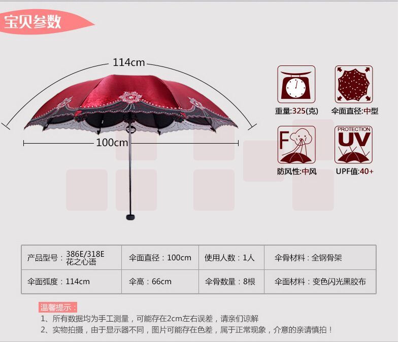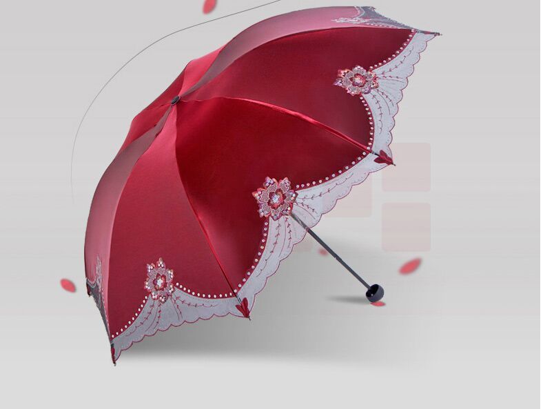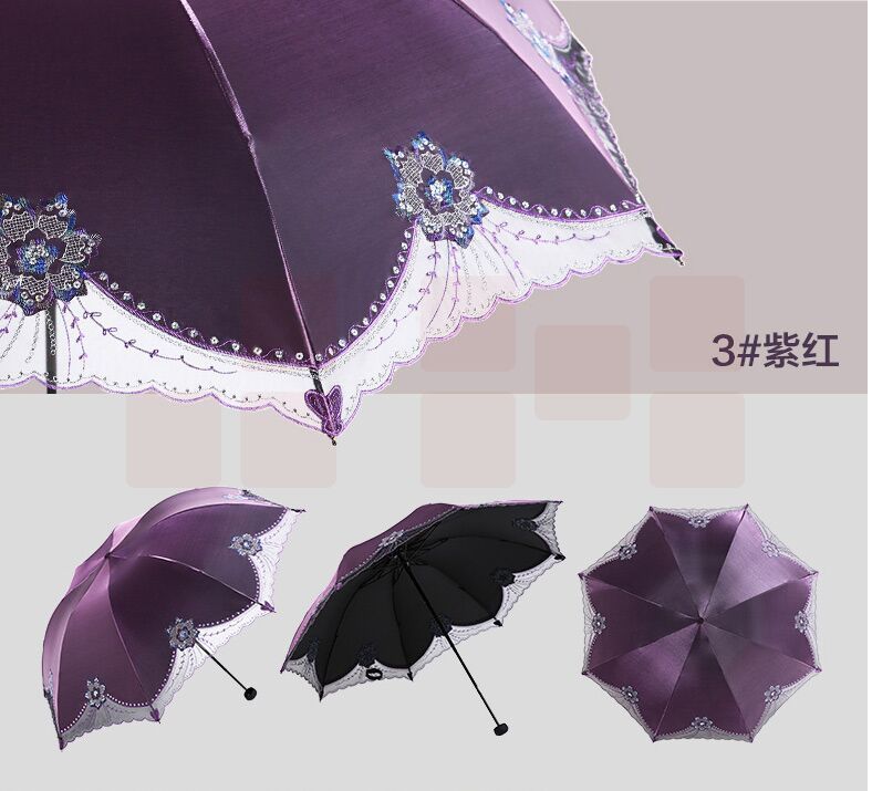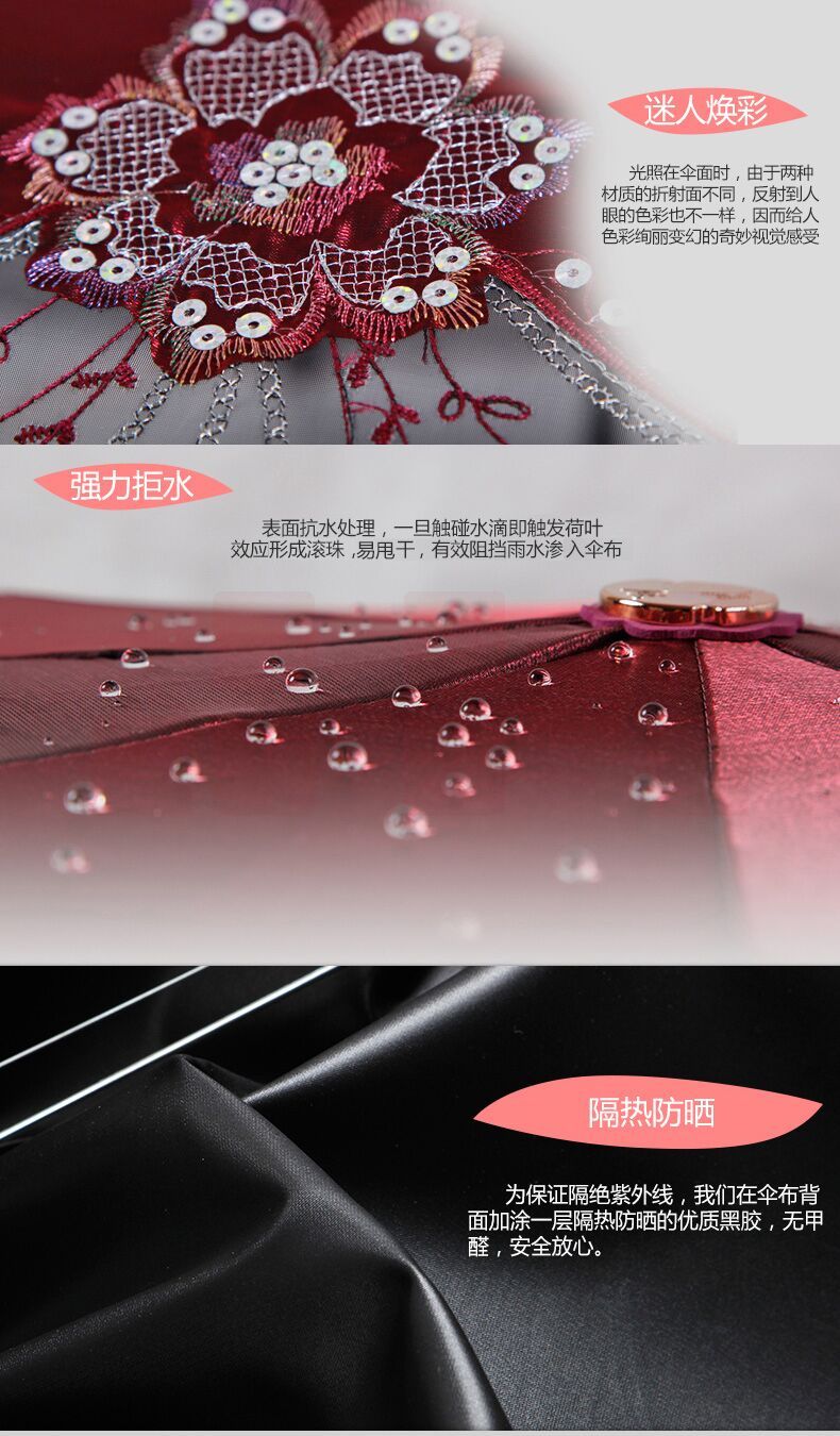 商品名称:天堂伞专卖店 防紫外线三折伞折叠蕾丝绣花伞晴雨伞遮阳伞二用UPF50+女士太阳伞超轻超强防晒伞 红色2
